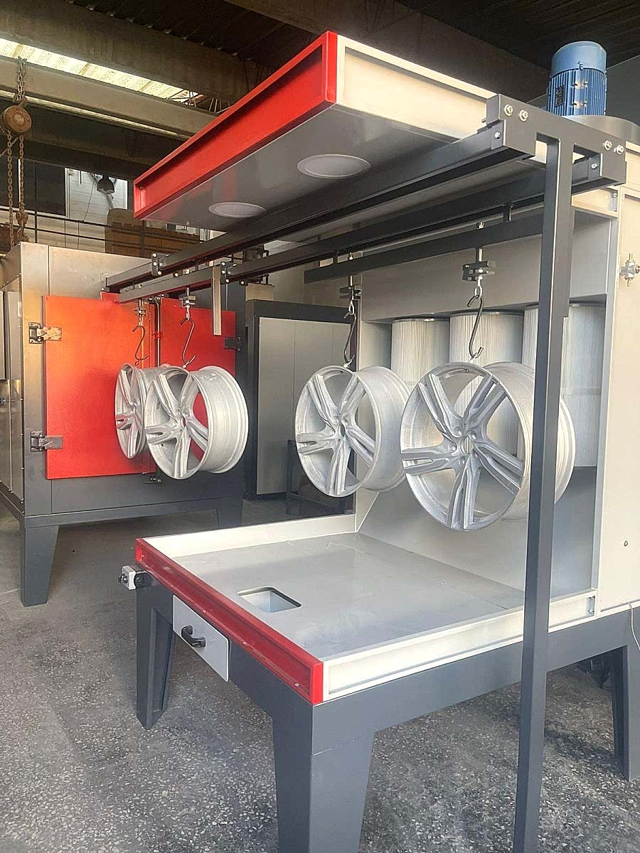 jantlara elektrostatik toz boya uygulandıktan sonra, bu boyanın yüzeye kalıcı ve dayanıklı bir şekilde yapışmasını sağlamak için kullanılan endüstriyel bir fırındır. Toz boya işlemi, sıvı boyaya göre daha çevre dostu ve dayanıklı bir sonuç verir. Fırın, uygulanan toz boyanın belirli bir sıcaklıkta (genellikle 180-220°C arası) eriyip jant yüzeyine yapışmasını ve ardından kürleşerek sertleşmesini sağlar. Bu kürleşme süreci, boyanın jant üzerinde homojen, pürüzsüz ve darbelere, çizilmelere ve kimyasallara karşı yüksek dirençli bir yüzey oluşturmasını garanti eder. Genellikle hassas sıcaklık kontrolü ve iyi bir ısı dağılımı sağlayan yalıtımlı iç hacme sahiptir. TORNADO Jant Elektrostatik Toz Boya Fırını, jant restorasyon ve üretim süreçlerinde son kat boyanın kalitesini ve ömrünü doğrudan etkileyen kritik bir ekipmandır.
